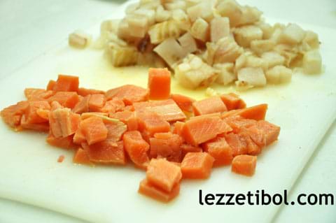 Yahni için İGLO Açık Deniz Somonu, İGLO Alaska Mezgitini ve İGLO Gurme Karidesi kullandık.Zeytinyağında piyaz şeklinde doğradığınız soğanı ve sarımsağı soteleyin. Üzerine takva zarı şeklinde doğradığınız havucu ekleyin. Ardından yemeklik doğradığınız domatesi ekleyin. bir süre pişirdikten sonra İGLO Açık Deniz Somonu , İGLO Alaska Mezgitini küp şeklinde doğrayıp tencereye ilave edin. Üzerine İGLO Gurme Karidesi ekleyin. defne yapraklarını, tuzu, taze baharatları ve karabiberi ekledikten sonra son olarak yeteri kadar su ilave edin. Malzemeler pişene kadar pişirin.
